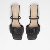 Dámské černé pantofle. Na nízkém širokém podpatku. S ozdobný řasením na pásku.