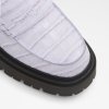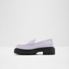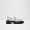 Fialové stylové dámské mokasíny na vyšší podrážce. V matném provedení s motivem krokodýlí kůže.
