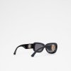 Dámské sluneční brýle. V černé barvě. Obdelníkového tvaru. Se zlatým detailem na stranici.