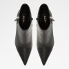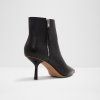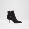 Černé kožené dámské kotníkové boty na vysokém jehlovém podpatku. Vnitřní strana se zipem pro snadnější obutí. V matném provedení.