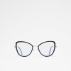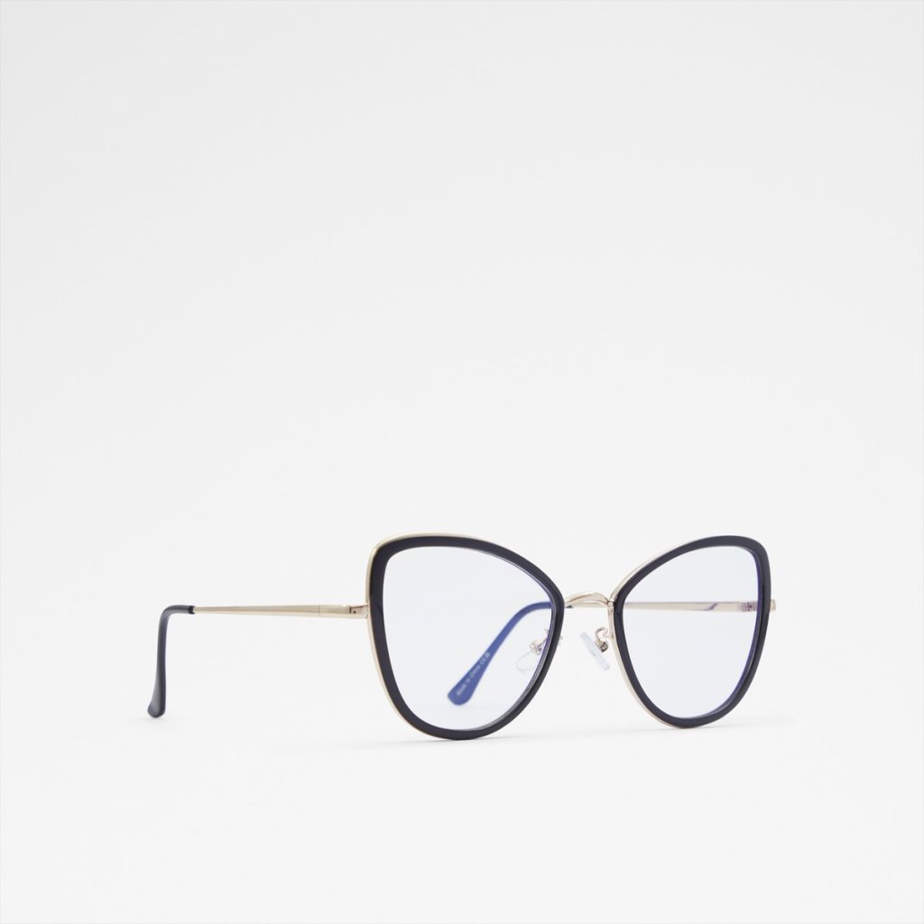 Dámské stylové brýle s čirými skly. Obroučky v černé barvě, se zlatými detaily.