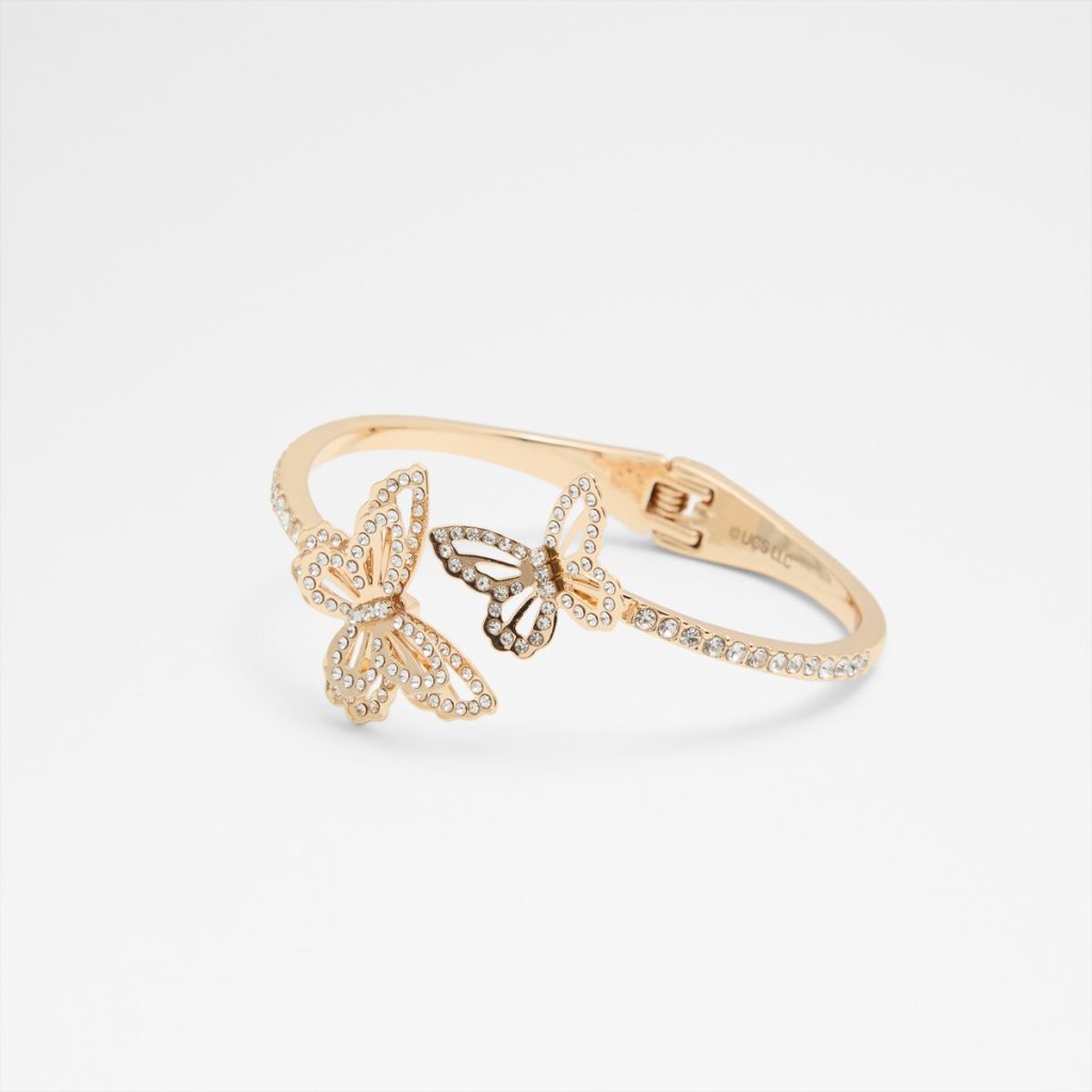 Náramek s motivem motýlů z limitované kolekce Wicked ve zlaté barvě. S ozdobnými kamínky a růžovým sáčkem pro úschovu.
