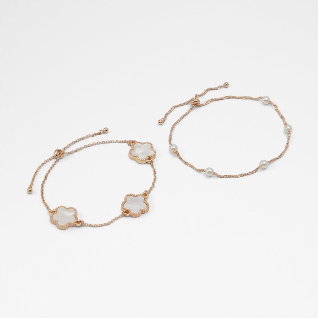 Dámské náramky ve zlaté barvě, s ozdobnými detaily.
