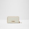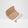 Dámská peněženka. Zipové zapínání. V béžové barvě. Kapsa na drobné, sloty na karty a doklady i přihrádka na bankovky. S odnímatelným poutkem.