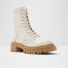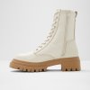 Dámské kotníkové boty. V béžové barvě. S vyšší podrážkou a šněrováním. V matném provedení. Vnitřní strana se zipem pro snadnější obutí.