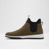 Pánské zelené kotníkové boty. Postranní guma a poutka pro snadné nazouvání.
