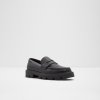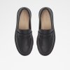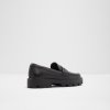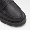 Dámské černé mokasíny na vyšší podrážce. S ozdobným páskem. V matné barvě.
