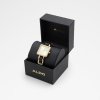 Dámské ručičkové hodinky. Ve zlaté barvě. S logem značky.
